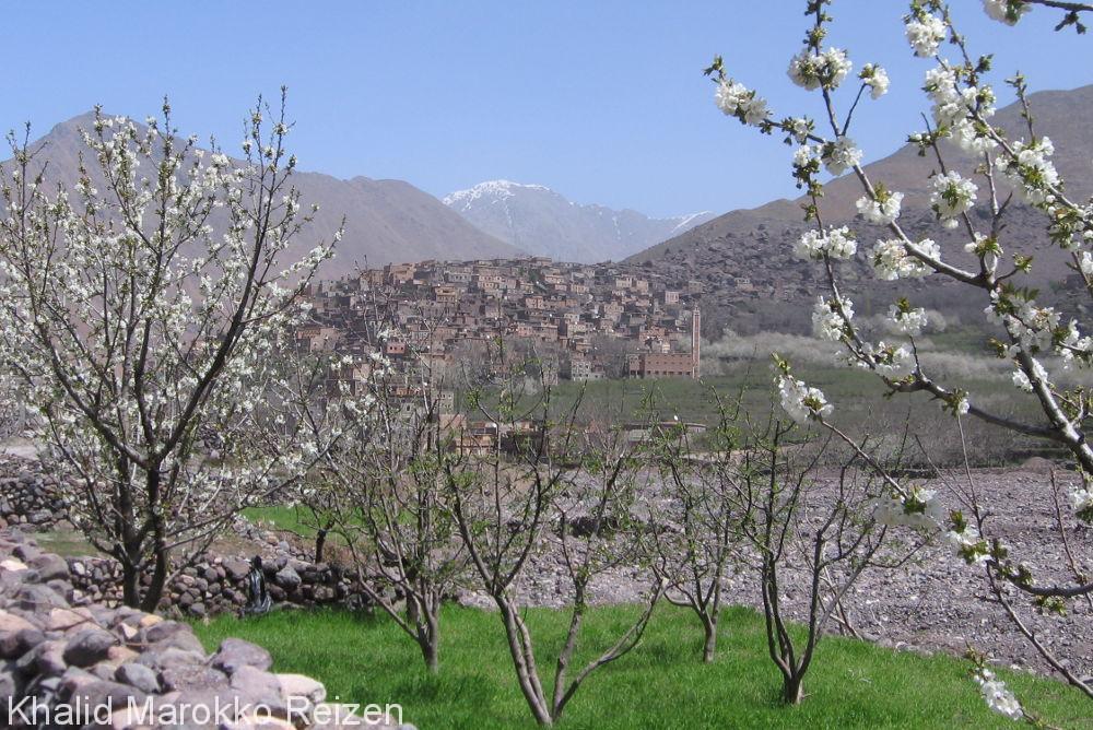 Dag 8 Kasbah Aït-Benhaddou en dan over de Hoge Atlas ’s Morgens een bezoek aan Kasbah Aït-Benhaddou. Dit is een van de beroemdste kasbah’s van het zuiden. Het is vooral een versterkte “KSAR” doordat er vele kashba’s en woningen dicht bij elkaar liggen. De versieringen van de Kashba hebben vele filmmakers geïnspireerd. Je steekt de Hoge Atlas over en je passeert de Tizi-n-Tichka pas (2260 m). Tenslotte kom je door de Ourika-vallei. Dat is een erg mooie vallei. In de bergketen rondom Imlil liggen in de groene dalen Berberdorpjes verscholen. Deze dorpjes, aan de rand van de bebouwde terrassen, vormen samen met de vergezichten op de hoge toppen, het decor van onze wandelingen. Je loopt nog een mooi klein stukje door een walnootbos naar de gite (berghut op 1950 m). Slapen in gite (berghut). Je hebt daar geen slaapzak nodig.
